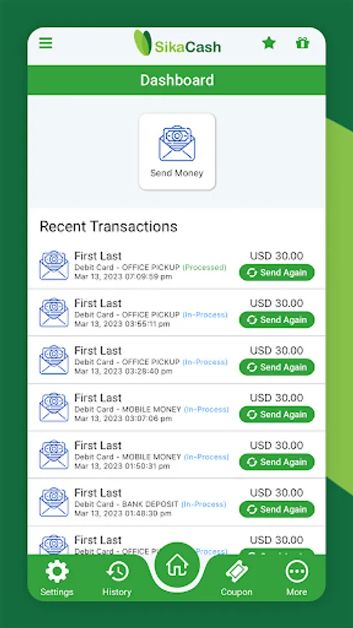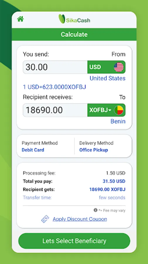Send money with SikaCash through your Debit Card to make a money transfer to relatives and friends directly from your mobile device. We use the best exchange rates to make sure your money goes further. Send money to friends and track money transfers using the SikaCash app, and feel confident that your transaction will always go smoothly.