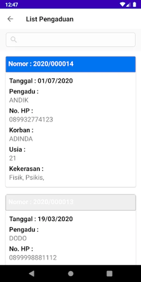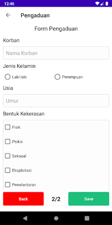 Application for Complaints of Violence in women and children