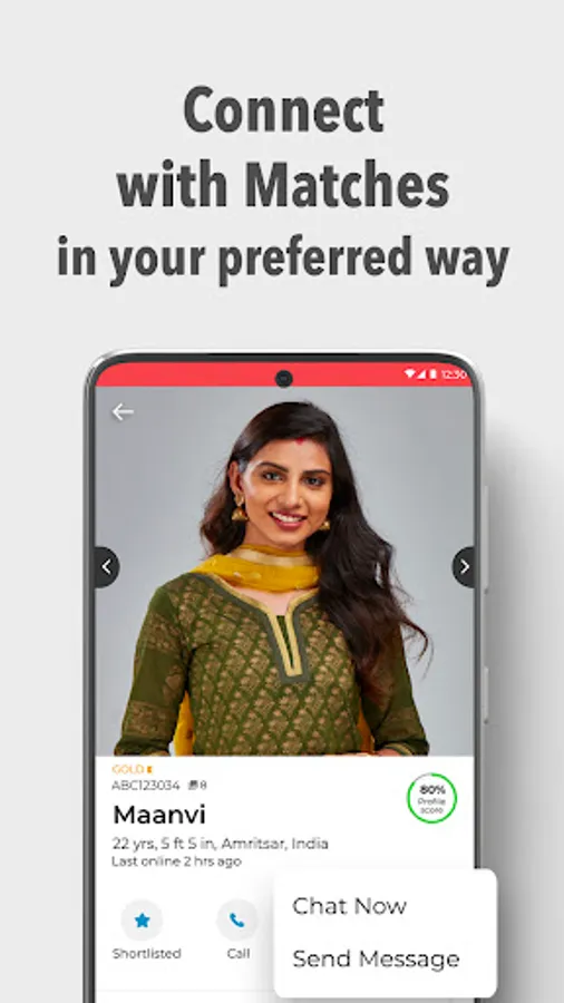 • Access complete profile information like Educational institute, Company and Horoscope / Kundli.