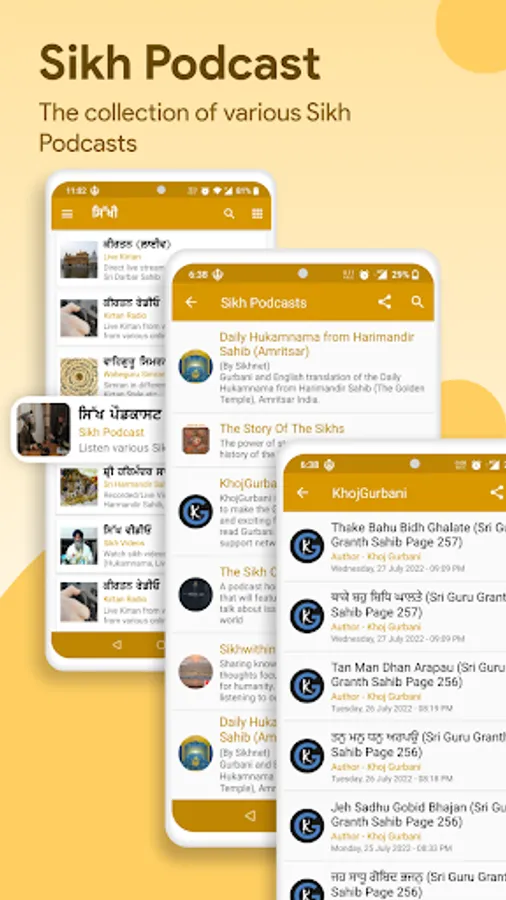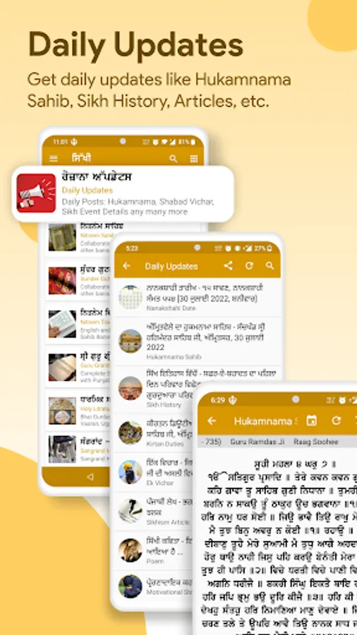 App contains many other sections like Katha Maskeen Ji, Sikh Jantri, Sikh News, Motivational Stories, Learn Punjabi etc.