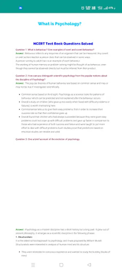 Free App Download of NCERT Solutions for Class 11 Psychology by expert teachers for latest edition books and as per latest 2023 NCERT CBSE
