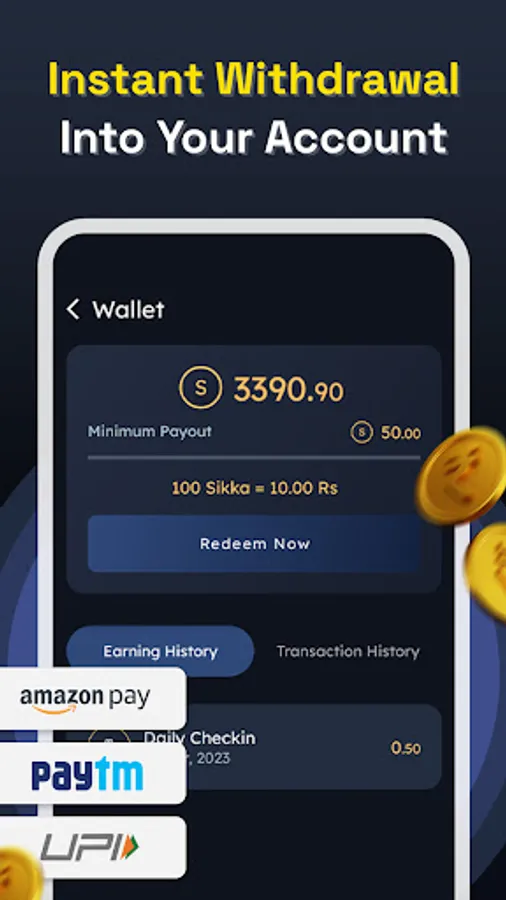 -Complete your favorite high paying offer cashback, you will receive the promised Sikka coins in your wallet. Then, transfer the Sikka coins to your bank account through Paytm or UPI, and use them as real money.
