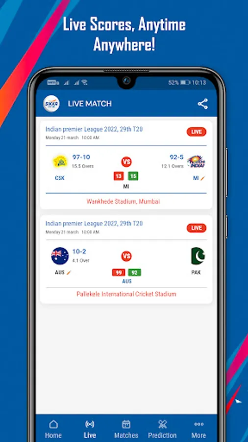 - Squads, Playing XI, Venues - all the information you need about ongoing matches.