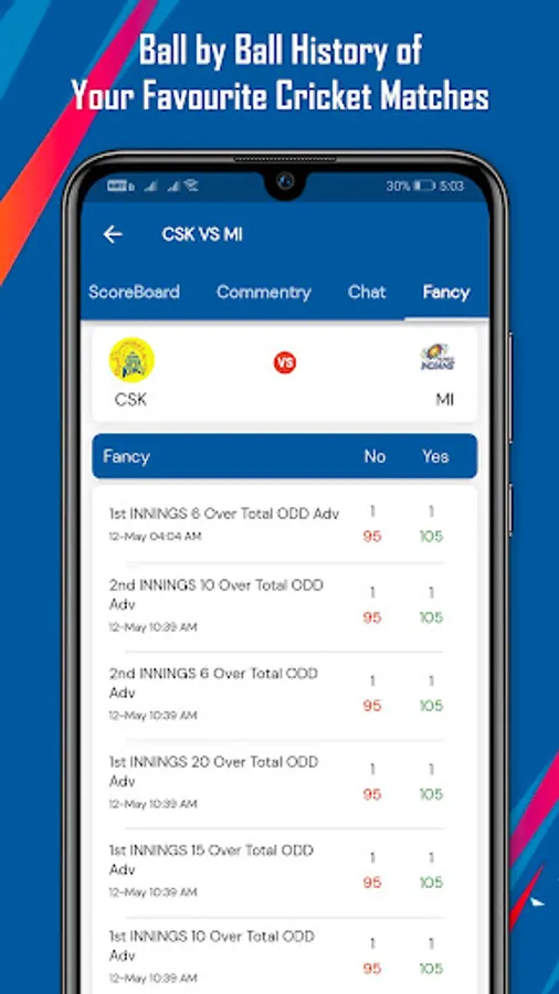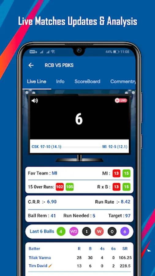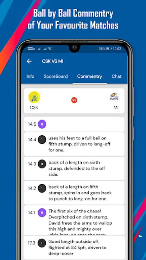 - Live cricket scores and ball by ball updates that helps you stay close to the action.