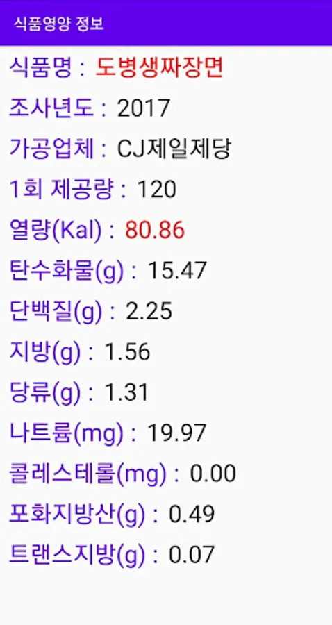 In this app, you can easily check the content of calories, carbohydrates, sugars, proteins, fats, saturated fats, cholesterol, sodium and other nutrients (calcium, vitamins, glucose, amino acids, etc.) through food name search.