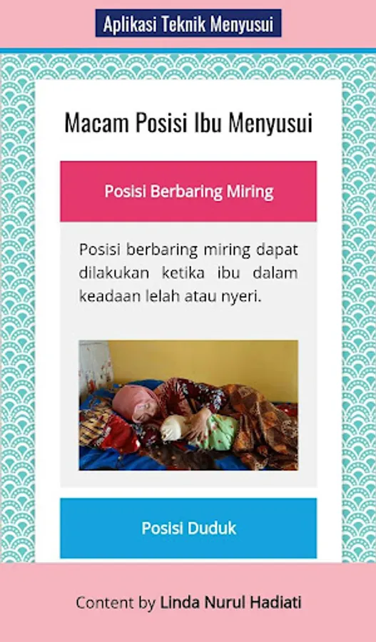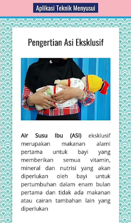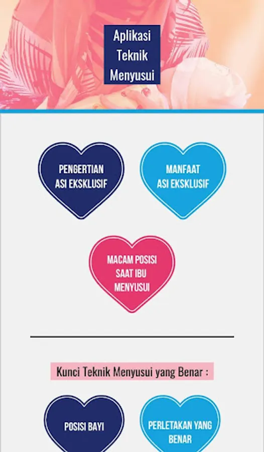 Aplikasi “Teknik Menyusui” merupakan aplikasi smartphone yang berisi topik-topik tentang teknik menyusui yang benar.