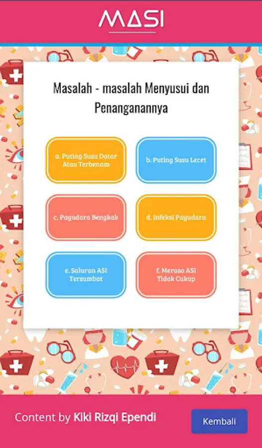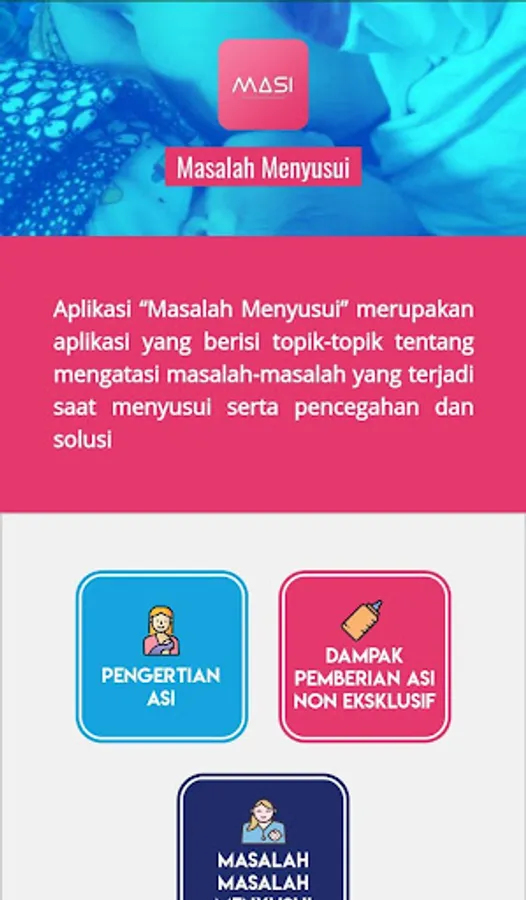 The application "Breastfeeding Problems" is an application that contains topics about overcoming problems that occur while breastfeeding as well as prevention and solutions.