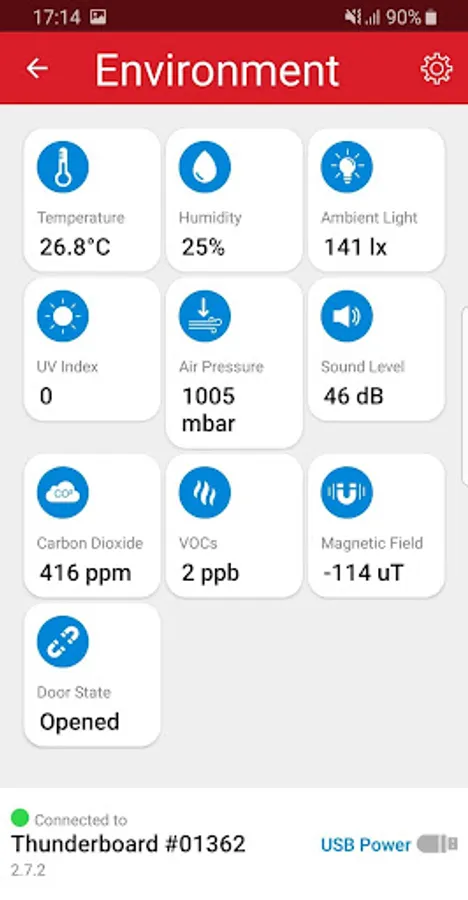 - The environment demo shows the value from all the on-board sensors.