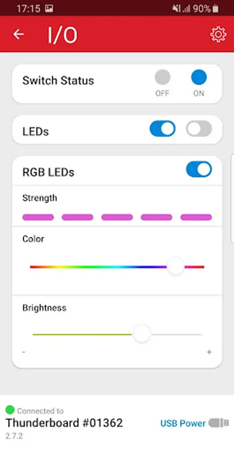 - The I/O demo allows control of the LEDs and receives button state indications