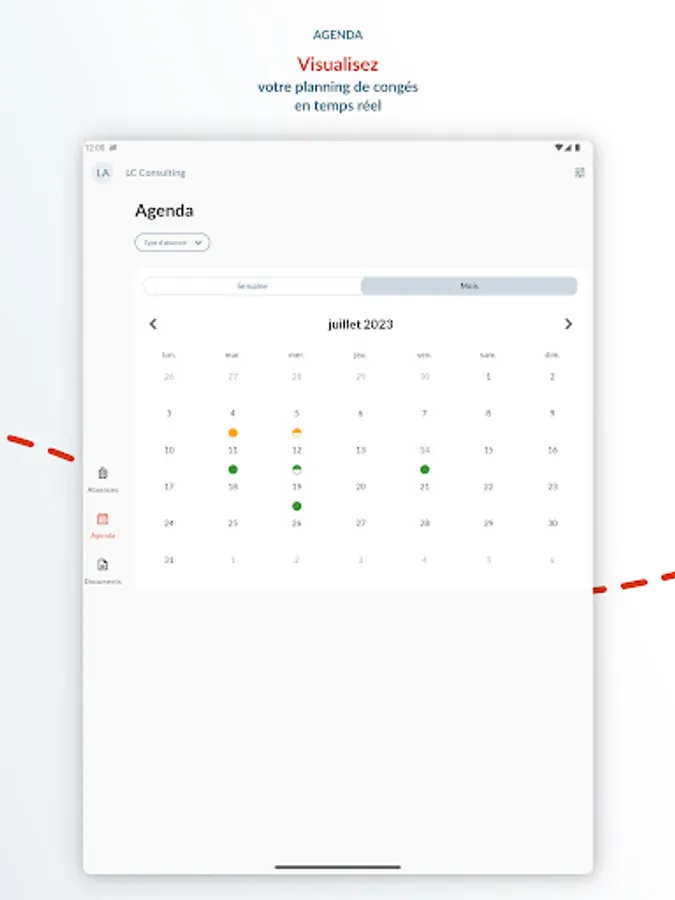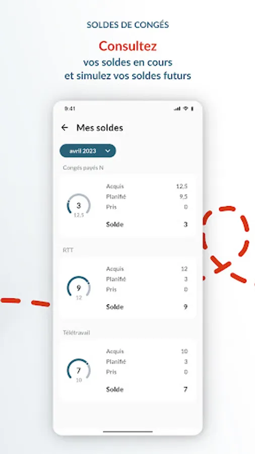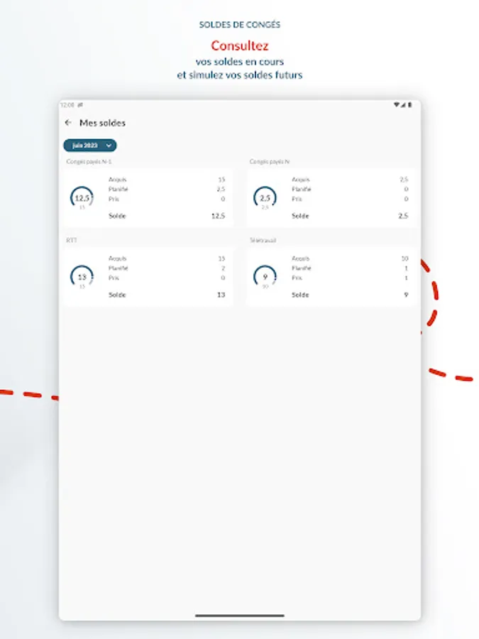 Wherever you are, and at any time of the day, the mobile application allows you to know the status of your leave balances on the current date and to estimate your balances in the future.