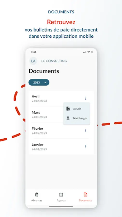 Also find your payslips directly in the application, available for viewing and downloading.