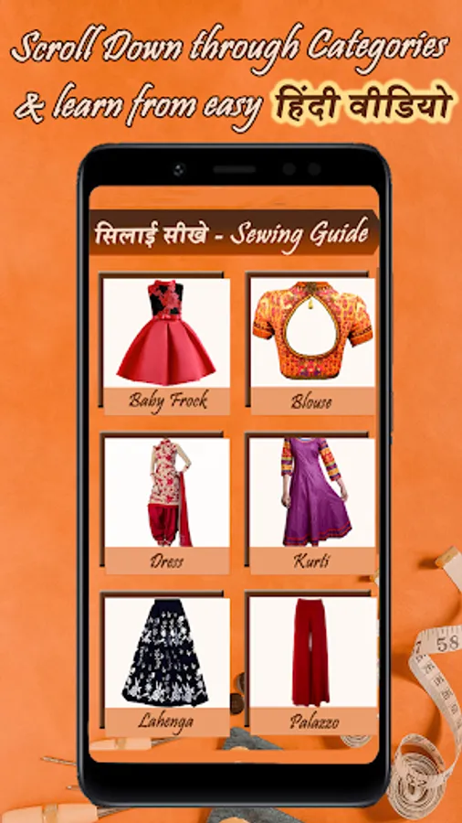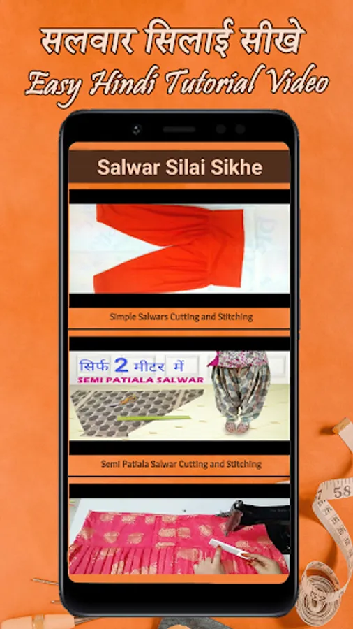 सिलाई का कोर्स कपड़े बनाने के लिए जैसे क ड्रेस, सलवार सूट डिजाइन, फ्रॉक, प्लाजो कुर्ती की कटिंग, ब्लाउज, सादा पेटीकोट, कमीज आदि बनाये अपनी पसंद का. सिलाई कैसे सीखे पूरा टेलरिंग कोर्स लेडीज के लिए वीडियोस के साथ यहाँ आप देख सकते है! सिलाई सिखने क आसान तरीके जाने और बनाये नए कपडे. घर बैठे पूरी सिलाई सीखे हिंदी में! यह ऍप डाउनलोड करे और सिलाई बुनाई करने के आसान तरीका जाने. बेसिक सिलाई कोर्स हिंदी में घर बैठे महिलाओं को सिखने क लिए.
