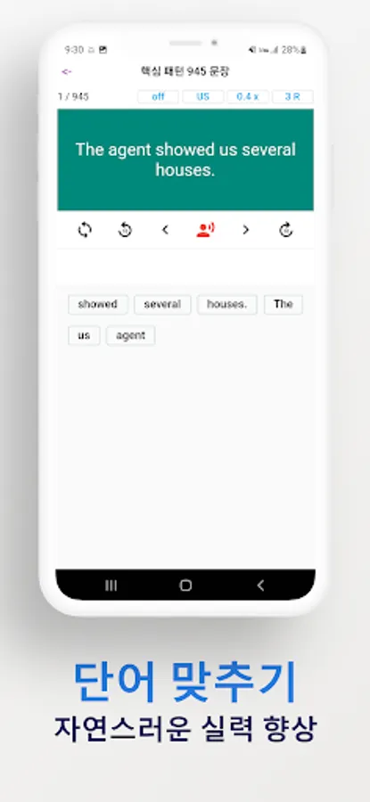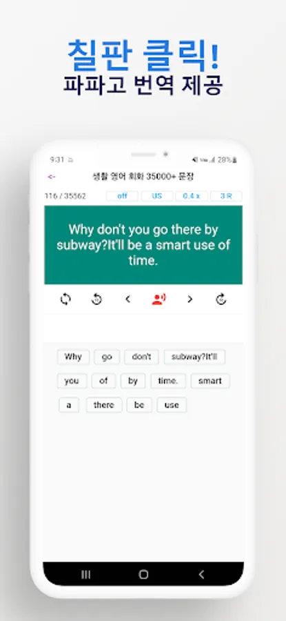 The app automatically adjusts the speed according to the English learner's skill level. This allows learners to understand and learn sentences more effectively.