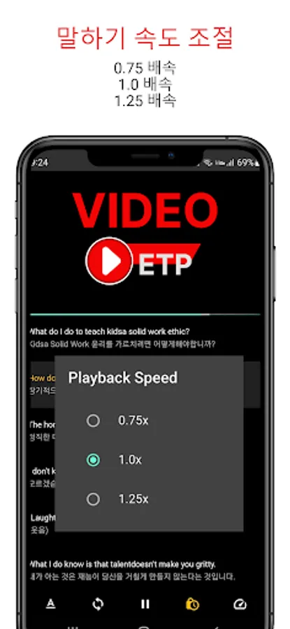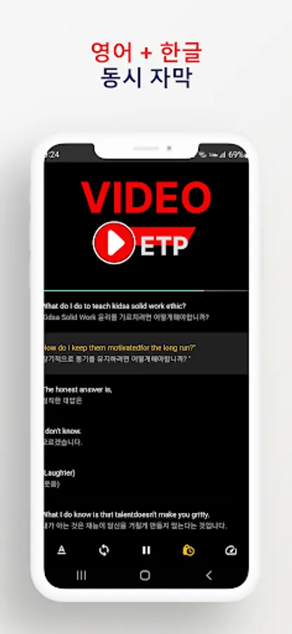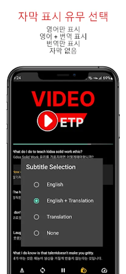 1. Provides English and Korean subtitles for videos at the same time.