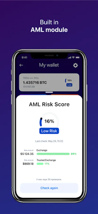 AMLSafe is a multi crypto secure wallet that supports WalletConnect for Web 3.0 apps, and instant transaction and assets security checking.