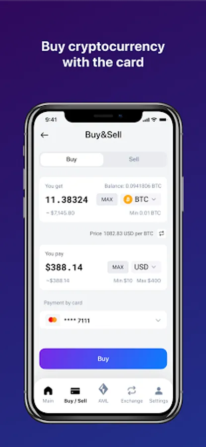 Our wallet allows you to store, buy and sell popular crypto assets through fiat pairs.