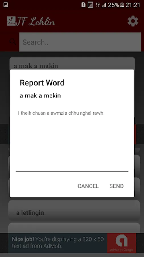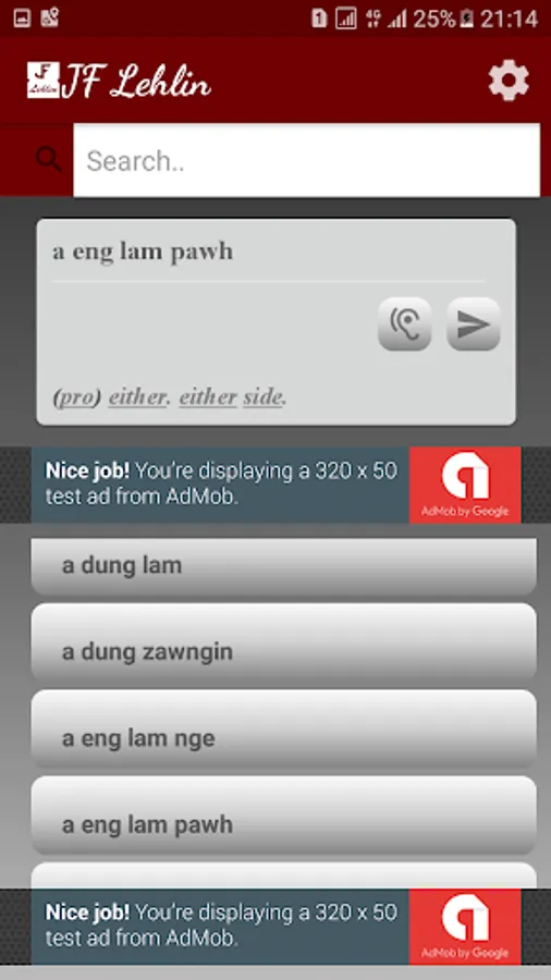 JF Lehlin hi Dictionary application awm tawh sa te laka a danglamna chu i thu chhiar mek eng thumal pawh i select apiang kha awlsam takin a 'lehlin' a en theih na lai hi a ni.