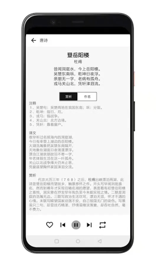 Each ancient poem is provided with real-person reading voice and artistic background music, and supports ancient poem listening, reading, reciting and pinyin annotation