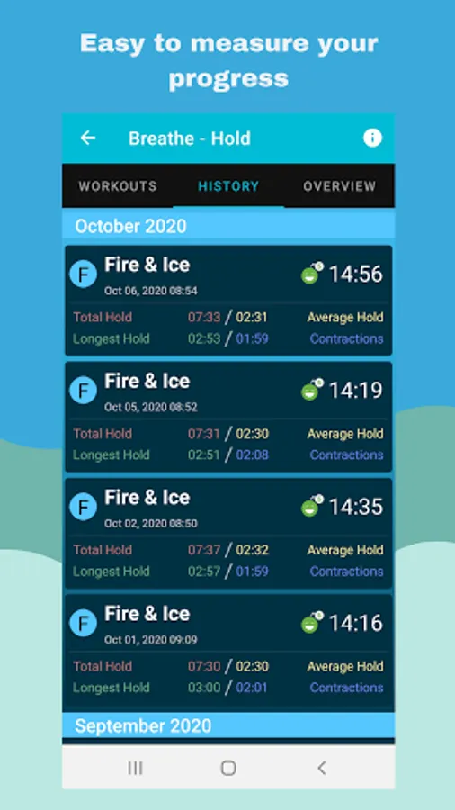 With the apnea workouts in the app, you can significantly improve your hold time.