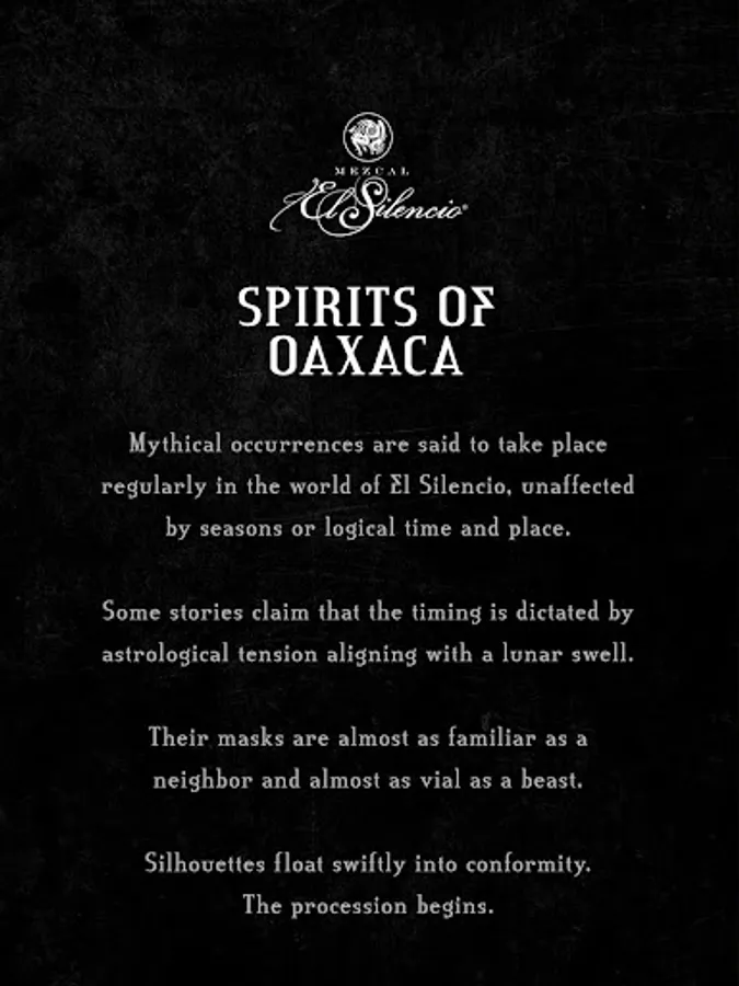 Press the button to place the El Silencio character. Mezcal El Silencio is the beginning of an adventure for each person within its pull. It is the portal for our alluring rituals. In our world, we are beyond storytellers. We are the story.