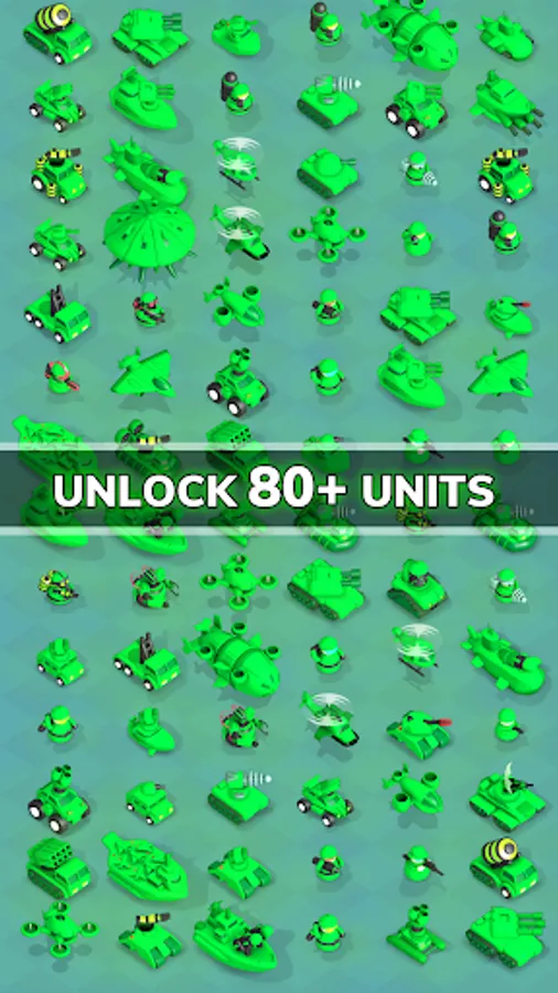 Gather an army of hundreds of units and challenge the enemy! Unlock new types of infantry and equipment, build your own base, do research and improvements, destroy enemy units and base.
