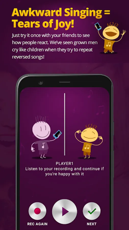 4. When all fragments are recorded, the Second Player listens to them all together reversed back and makes his final guess! If fragments have been repeated close enough, the original song will reveal itself in a distorted, crazy and 100% funnier way.