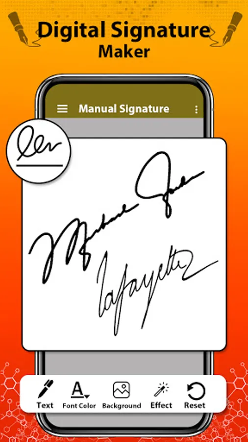 * If you shared current Signature with your friends via social media or Message then use share button (on the Right Top of the Screen).