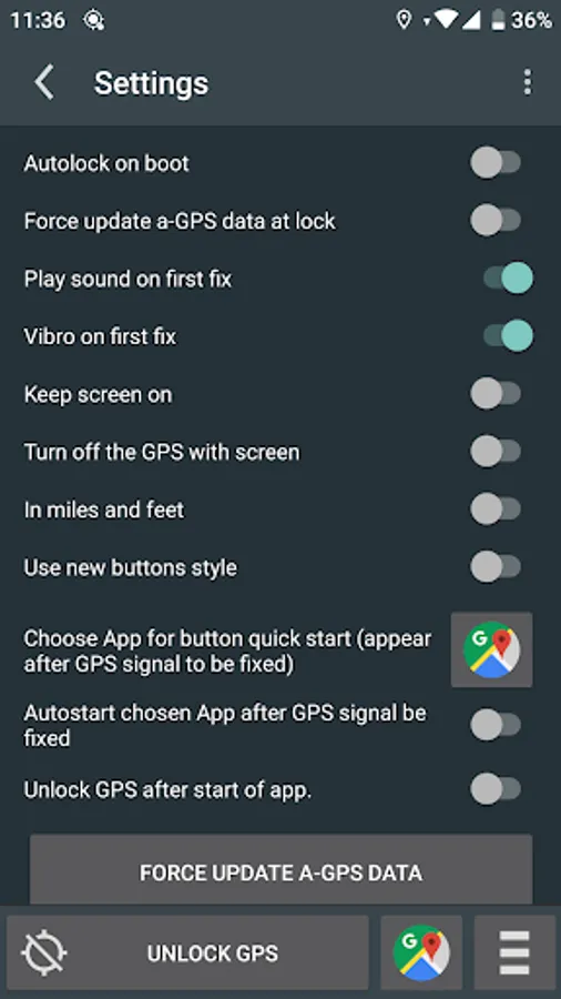- Manual or automatic launch your applications after fixing GPS signal (the desired application you specify in GPS Locker settings)