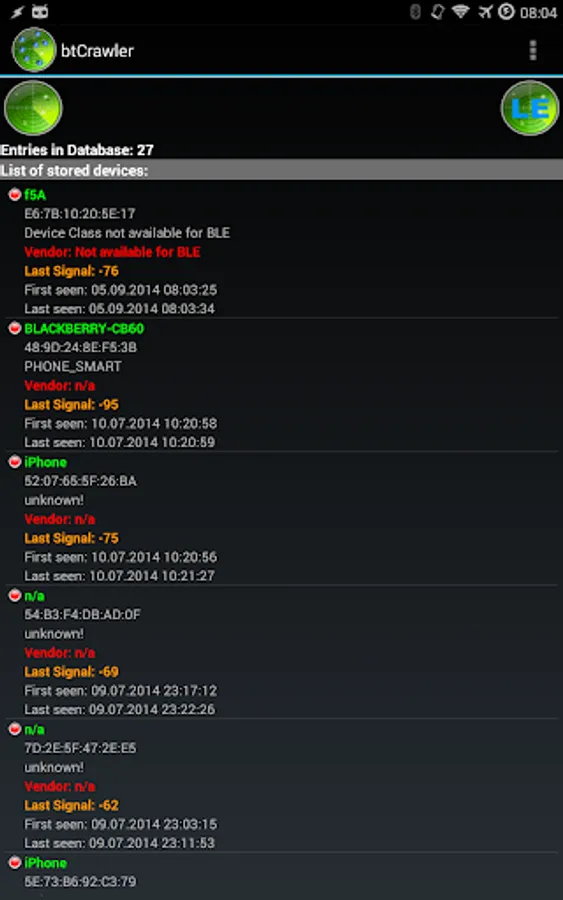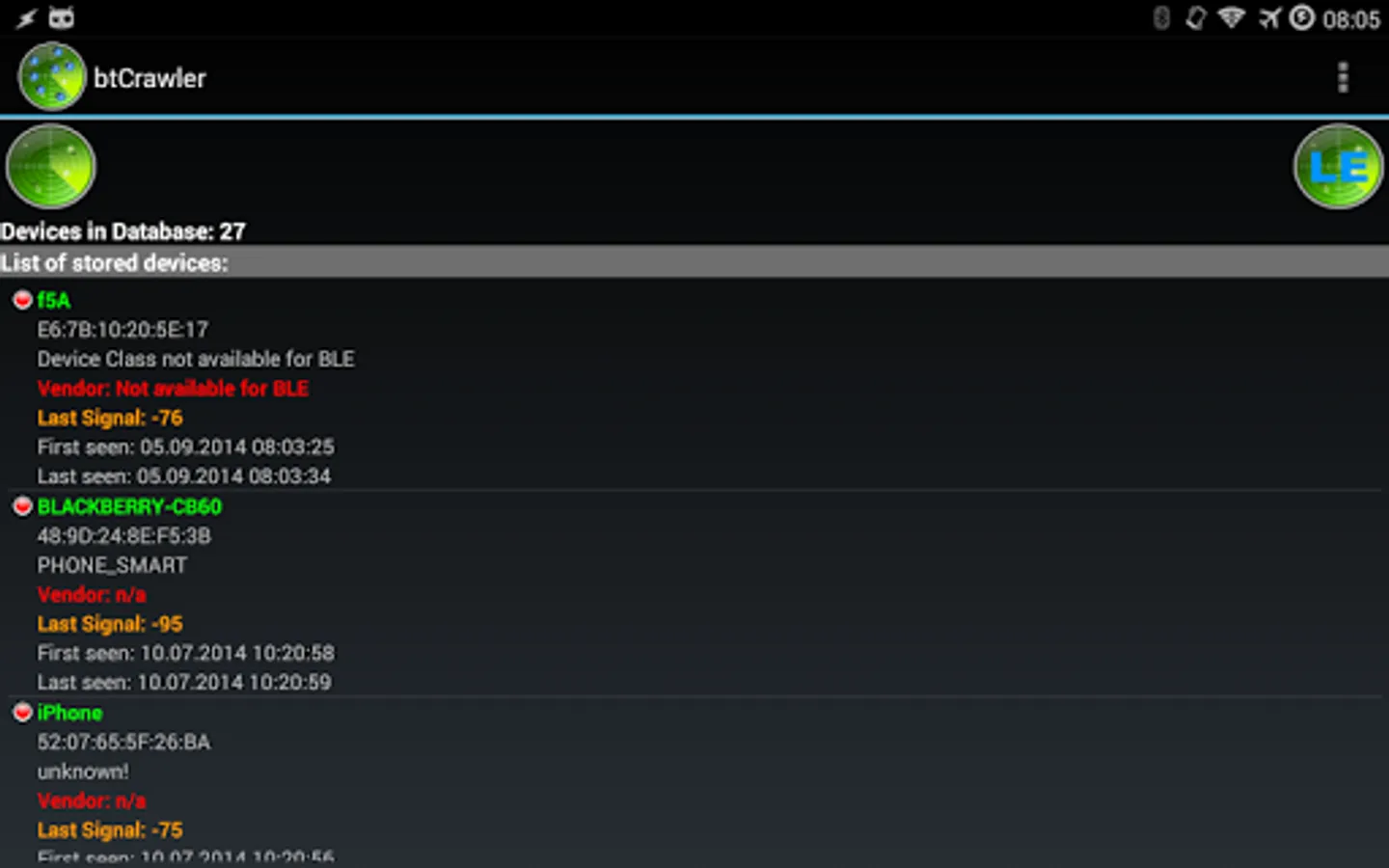 (People call btCrawler often also: Bluetooth Scanner, Bluetooth Sniffer, Bluetooth Wardriving, Bluetooth Diagnostic, Bluetooth Tool)