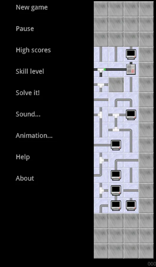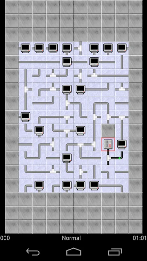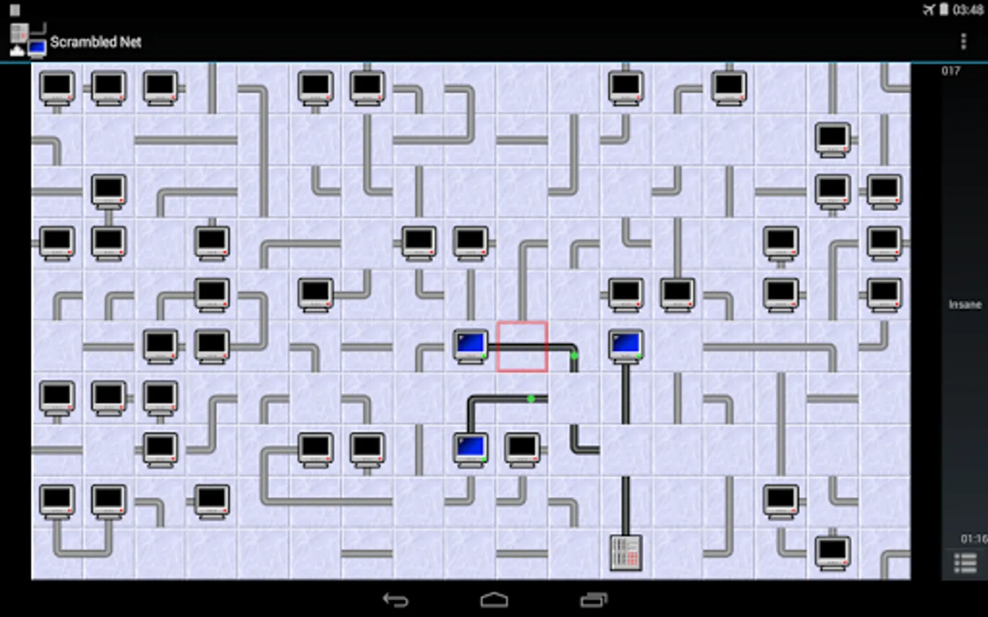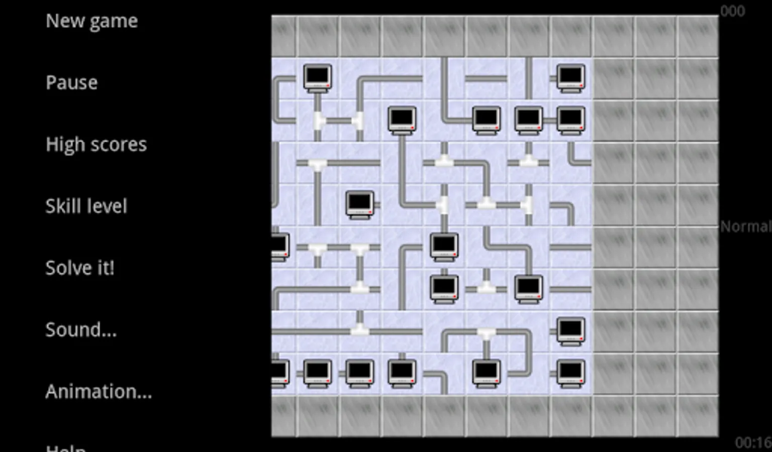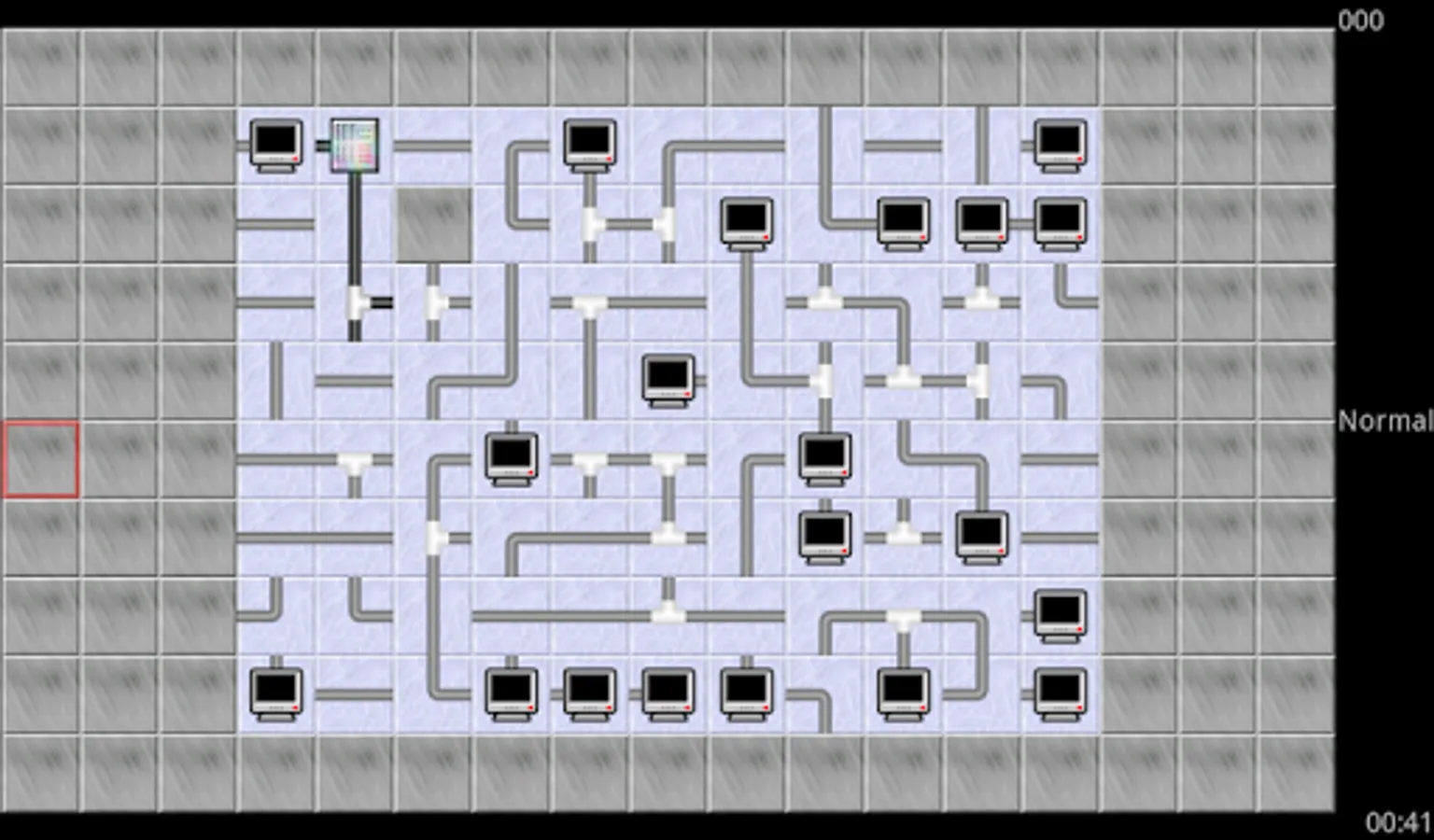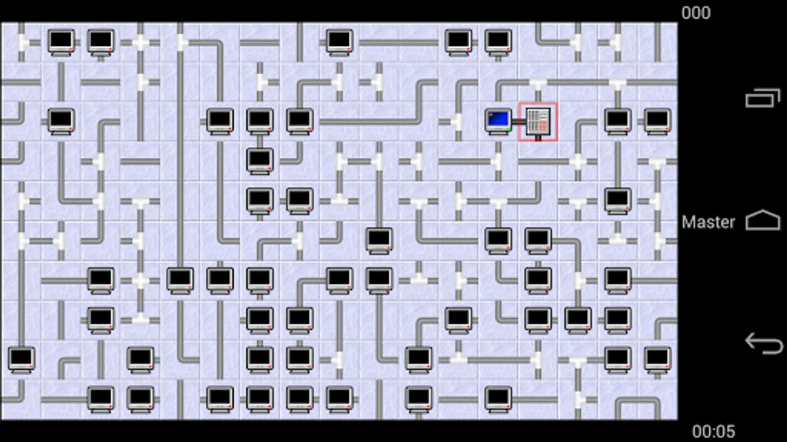 You are given a computer network with the connections all scrambled; rotate the tiles to connect all the terminals to the server. See if you can make your way through the 5 difficulty levels.