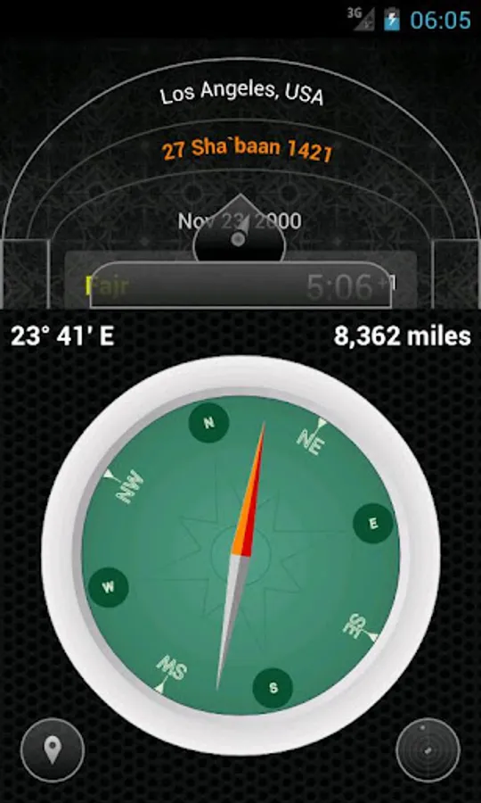 ✔ Qibla compass (Direction/Distance to Ka'bah from True North)