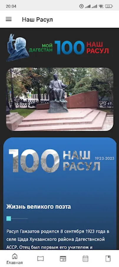 The application has the ability to listen to the works of the poet and read them online in Russian and Avar