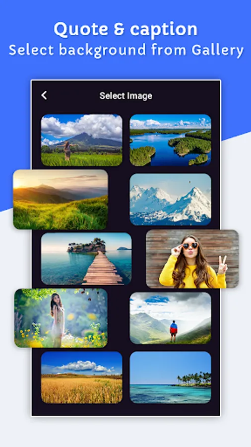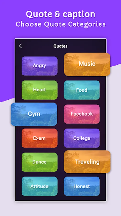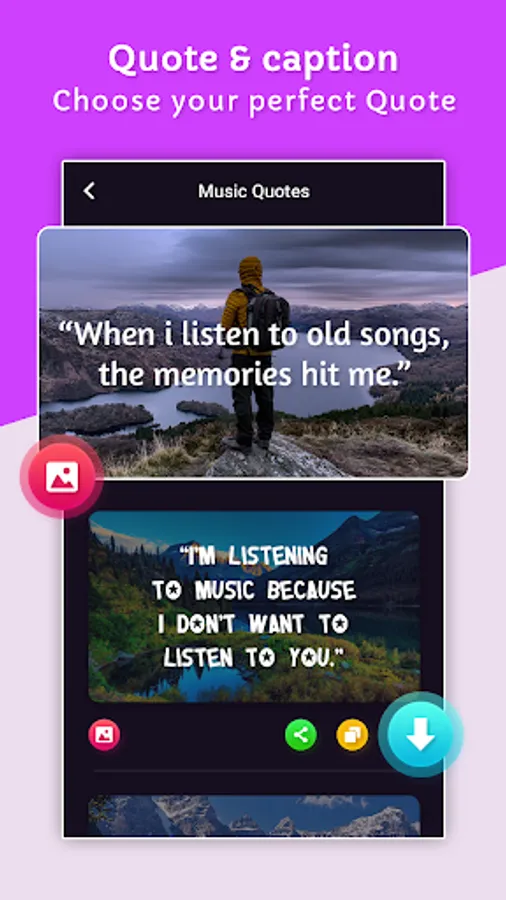 Caption & quotes - You can select the image from thousands of free backgrounds, add a quote from the app collection or a collection of your own. Rapid Quotes one of the very few quotes creator apps which lets you search for a particular Quote or author which makes life easy. You can find any quotes from the collection instantly.