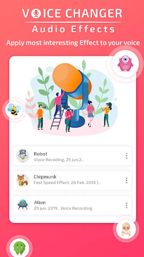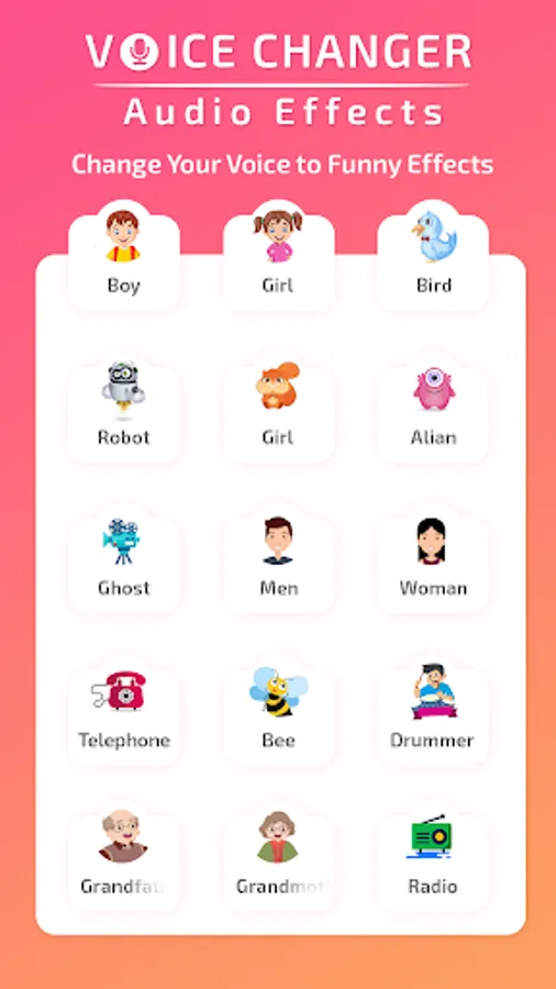 • Change your voice and have fun listening to your modified voice with different voice effects.