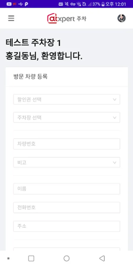 엣스퍼트 주차관제 - 사용자 Screenshots