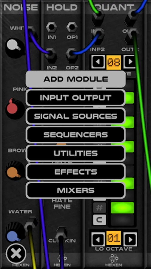 Hexen is a virtual modular eurorack synthesizer for your phone or tablet with over 50 module types to choose from.