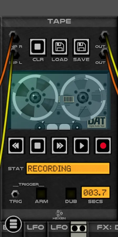 This free version allows you to play with all available modules and even export audio using the TAPE module. The free version is limited: you can't save your racks. You can upgrade with an in app purchase to activate rack saving as *.hxn files.