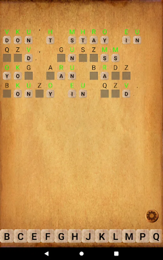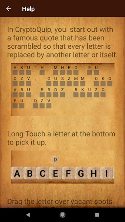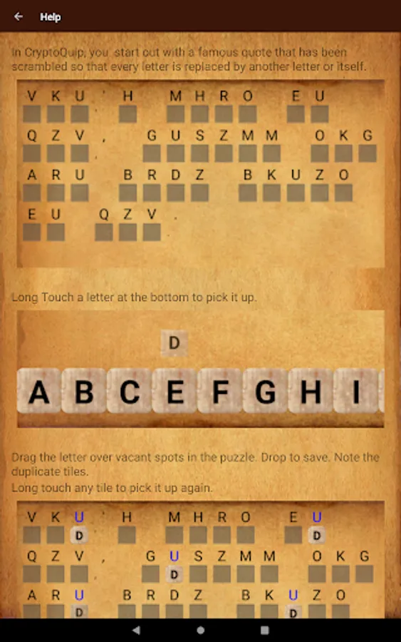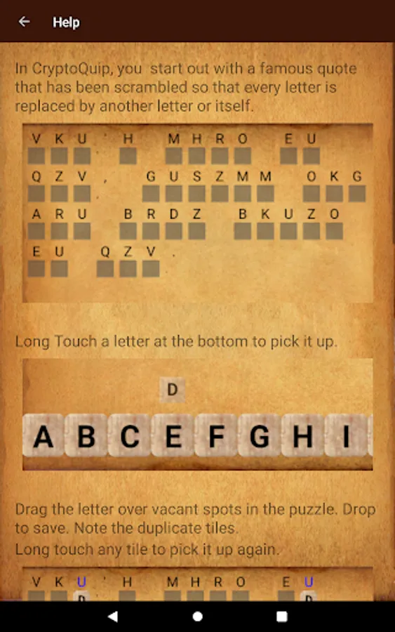 The drag and drop interface that matches letters with the puzzle letters make the game easier and more fun than other cryptogram games that use a keyboard popup when you solve the puzzle. Check it out for yourself.