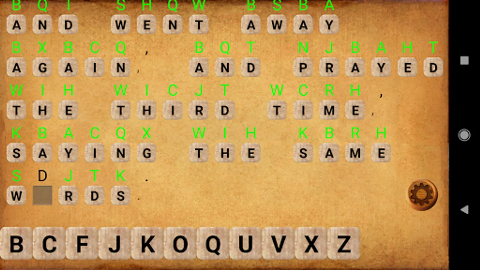 At the core of the game is the Cryptogram puzzle which takes a sentence and replaces each letter with another letter from the alphabet. With intuitive drag and drop gameplay you will enjoy making guesses by dragging tiles onto the puzzle area and revealing the quote. If you need a hand there's also a helpful hint feature.