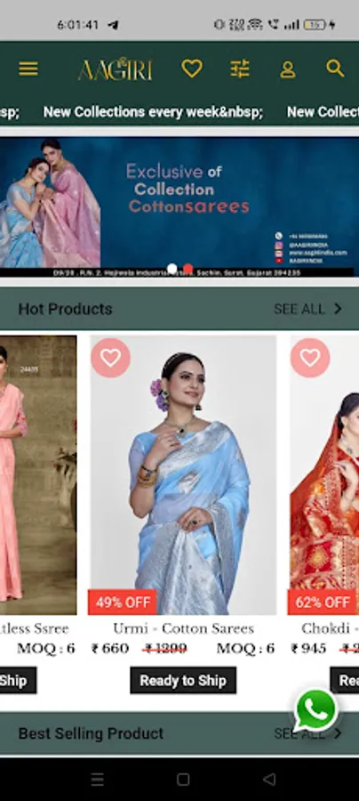 Aagiri is a leading women's Indian clothing manufacturing company based in Kolkata, West Bengal, India, that has served millions of custimers over the years. Aagiri Specialising in the manufacturing of sarees, kurtis, salwar suits, party wears, and much more. This website offers the added benefit of allowing our buyers to order wholesale Indian Women's clothing without having to visit our factory. We've come up with a list of the most popular designes of women's fashion catalogs that are now trending. Indian traditional women's dresses are popular not only in India but also in other parts of the world where there is a demand for low-cost wholesale clothing, the good news is that we provide both of these services as well as shipping to all of those countries. Aagiri is the Leading wholesale saree market in India