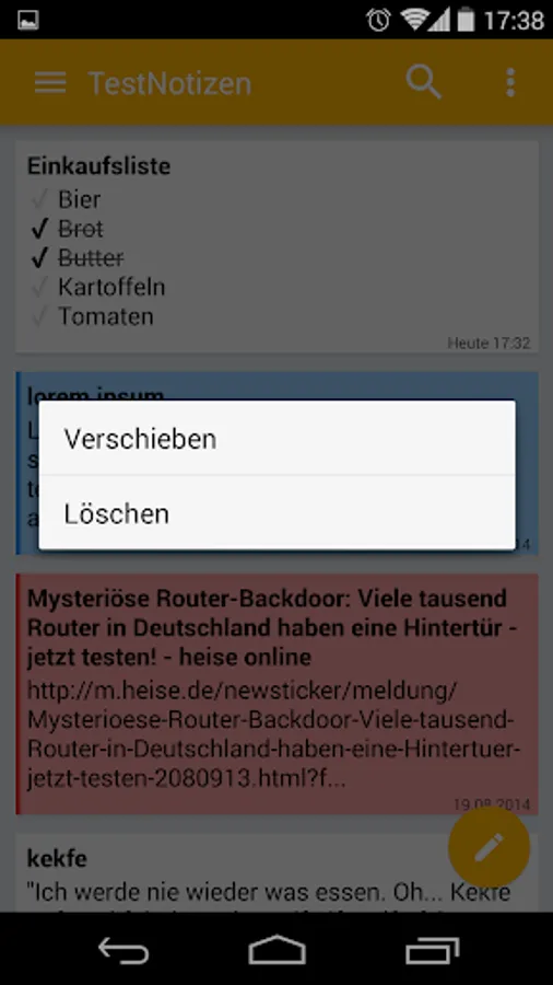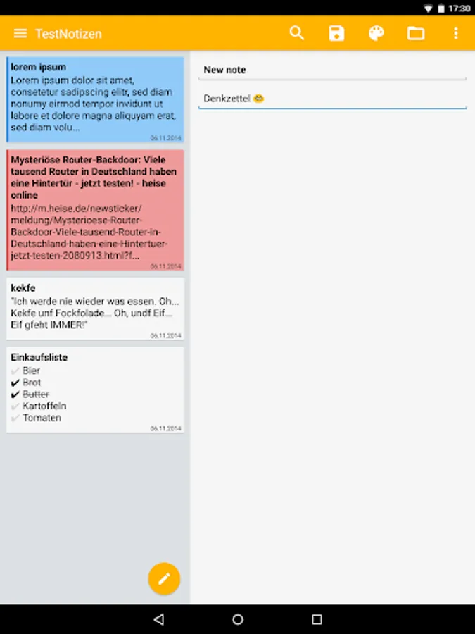 Denkzettel is a notes-management for *.txt files. The advantage of this solution is the ability to synchronize his notes with any cloud service, especially their own cloud services like ownCloud, Nextcloud etc. can be used so easily.