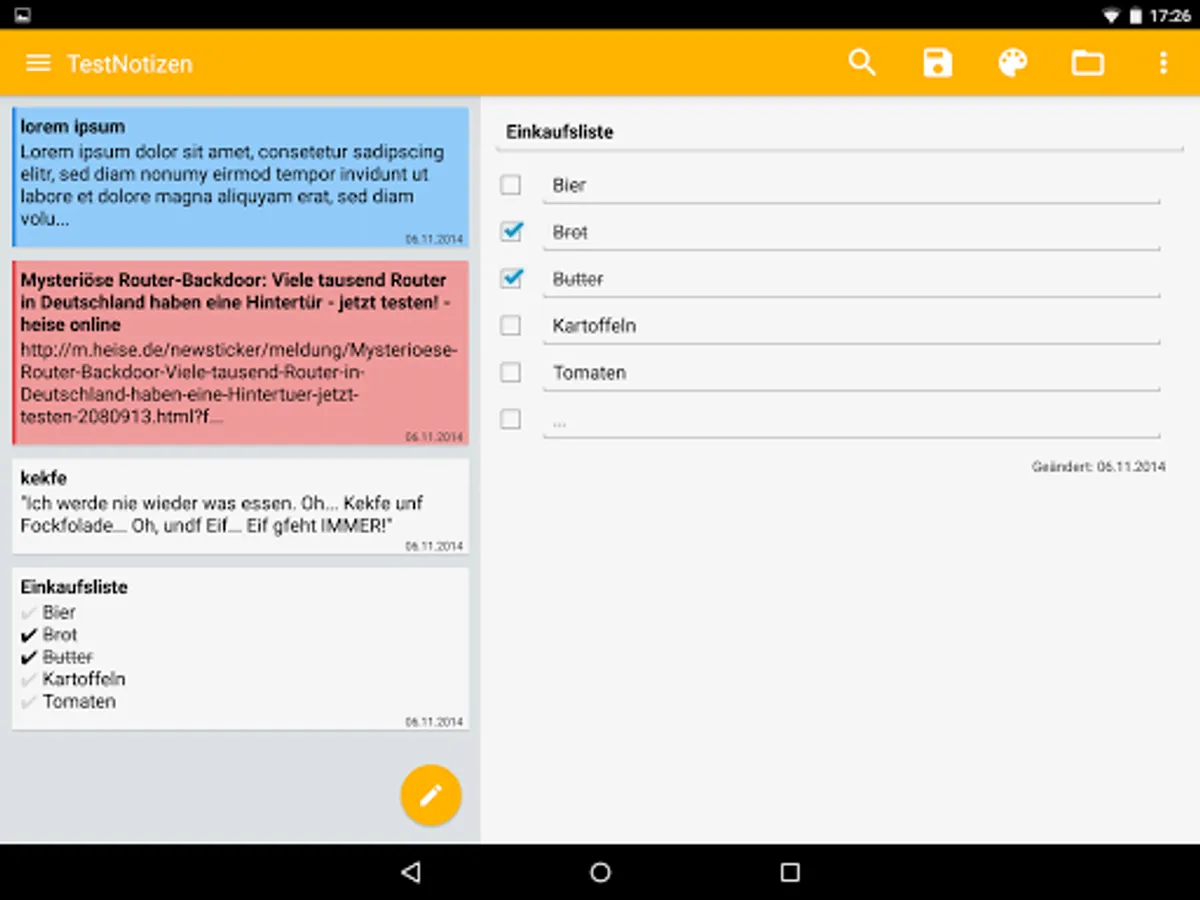 Denkzettel itself has no built-in synchronization, only here set the path to the *.txt files, eg on the SD card. Any application can thus be used for synchronization, eg FolderSync (also supports WebDAV).