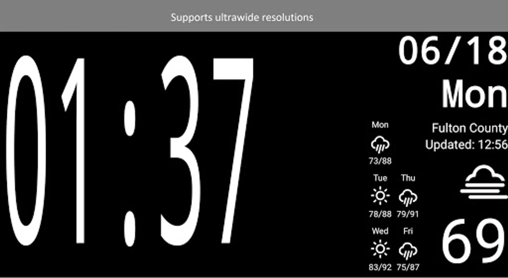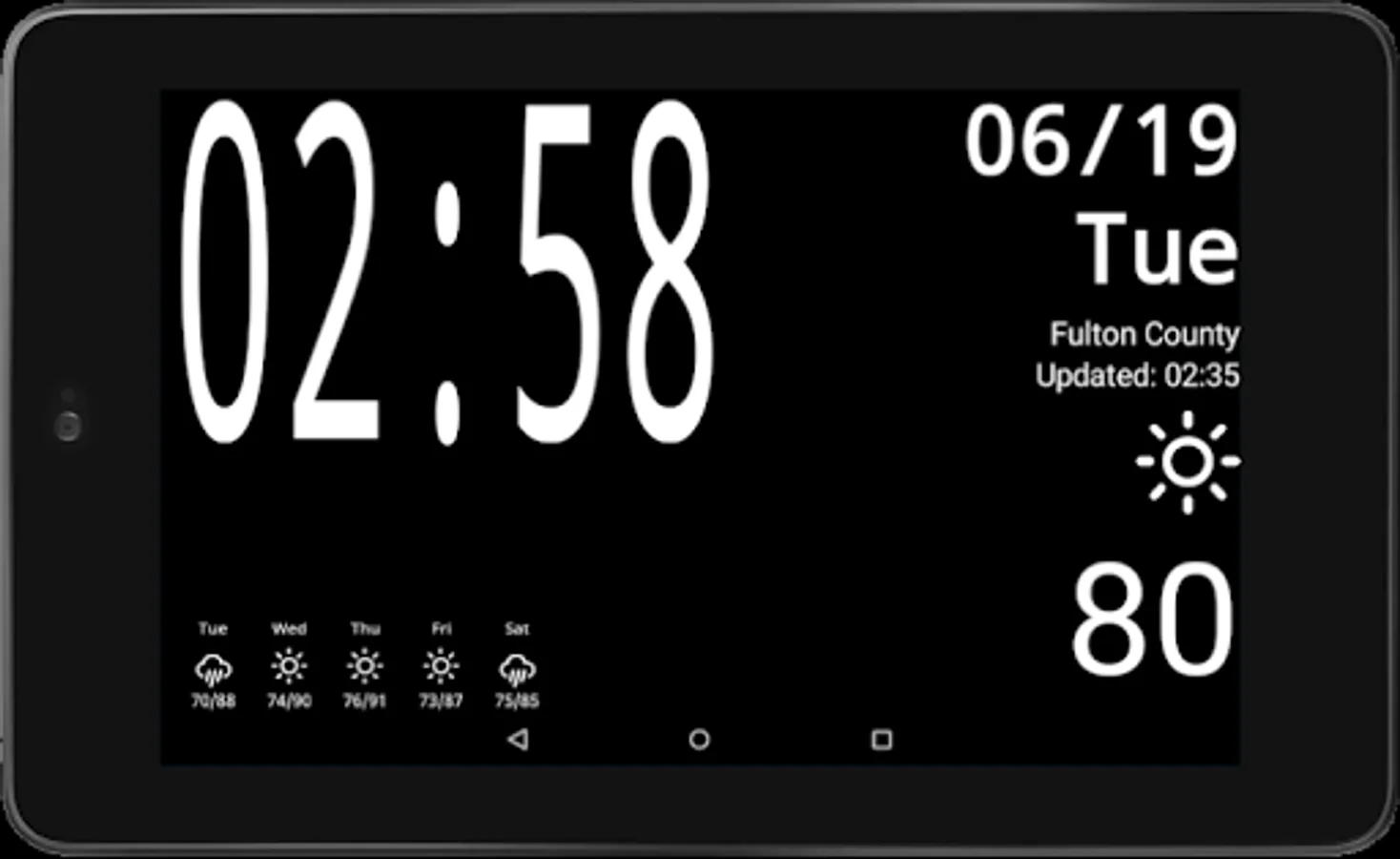 This app was designed to be run for long periods of time without much user interaction. This app functions as a weather station and provides only the most important weather data. It should run well and look good on any sized phone or tablet. A custom view optimizes space for extra wide phones with aspect ratios greater than 16:9.