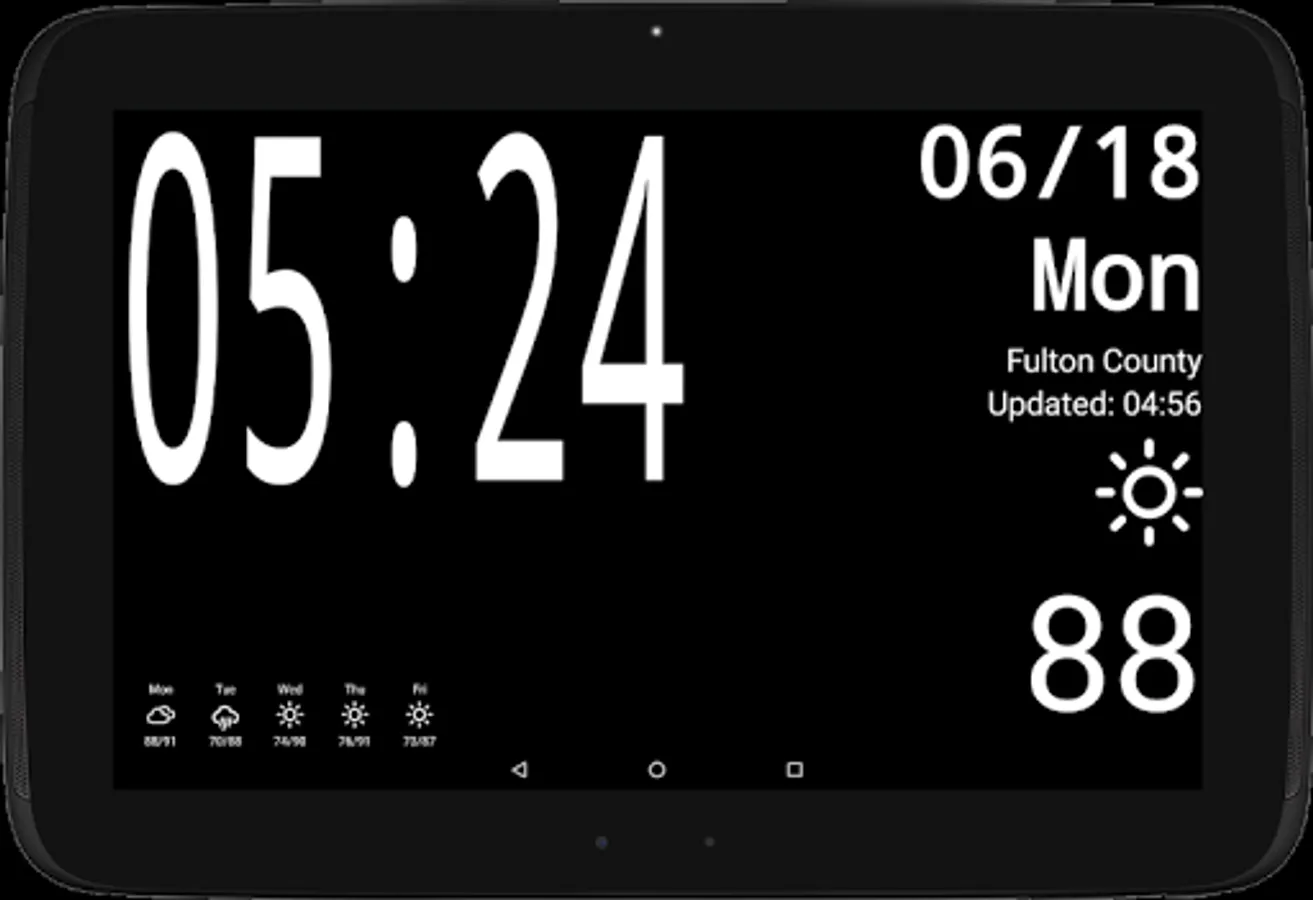 A simple and beautiful nightstand clock that also displays useful weather information. It is free and has no ads. It displays the current time and weather in an easily readable form. This is honestly the best-looking clock or weather app on the Play Store.