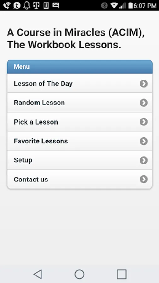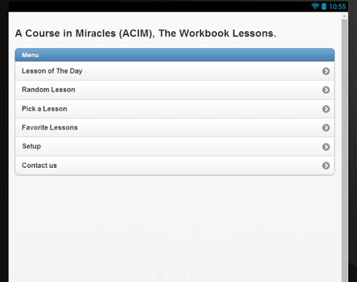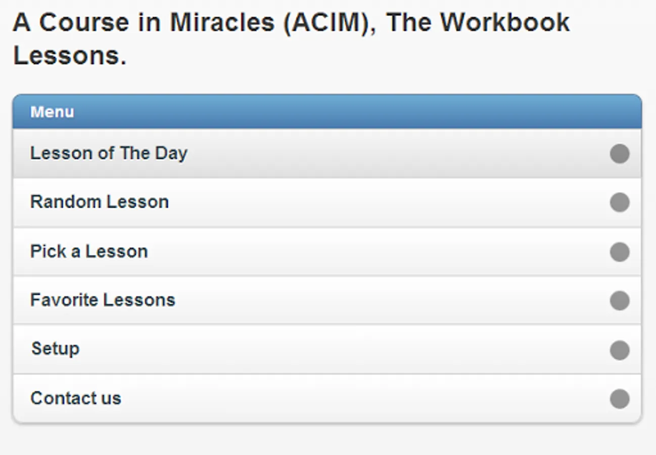 ACIM (A Course in Miracles) Daily Lesson Application. Set the start date for your lessons and the app will display the correct lesson for the next 365 days. If you start on January 1st the lessons will last the entire year.