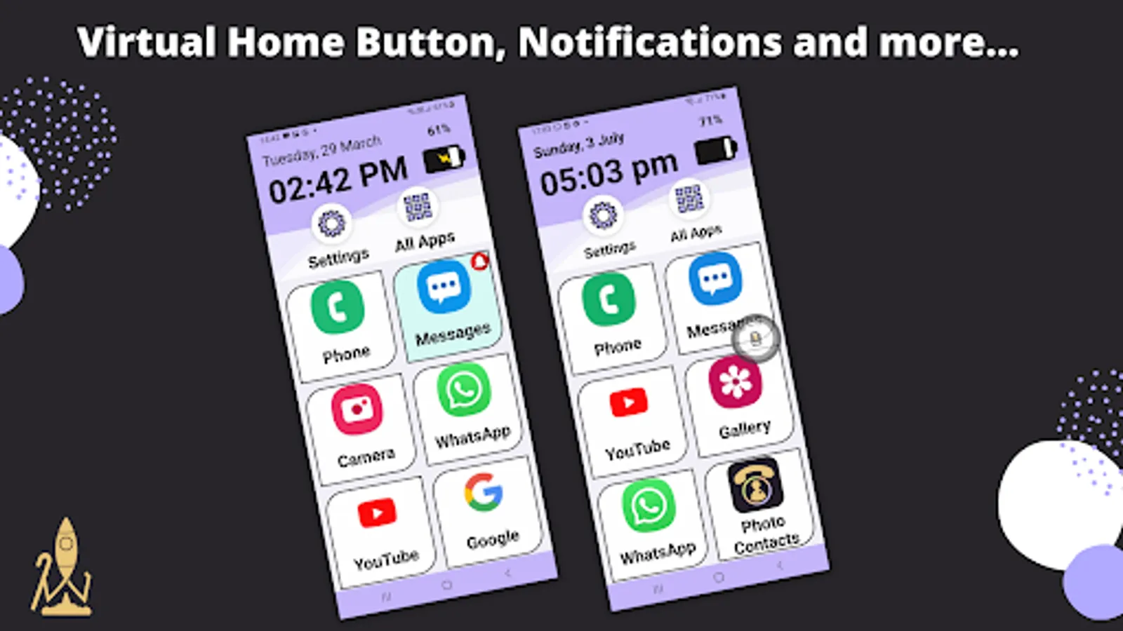 🟢 Virtual home button, app notifications, personalized themes, and many more.