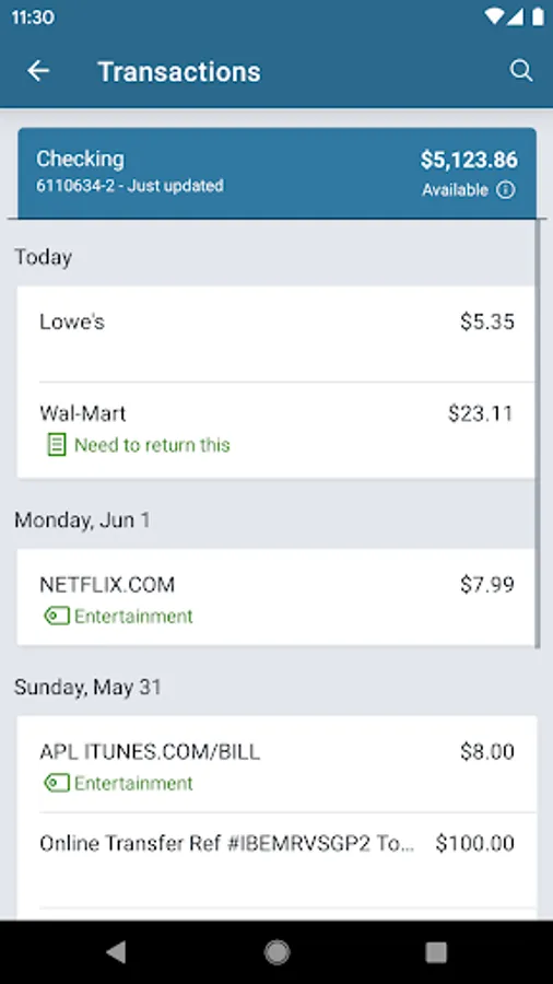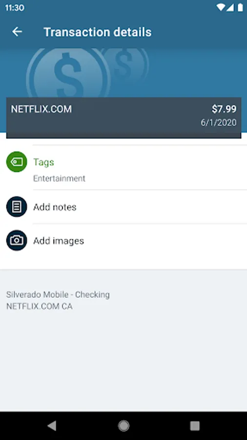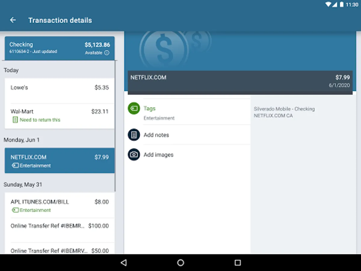 Add Tags, Notes, Images & Geo-Information: By enhancing transactions with custom tags, notes, or photos of a receipt or check, you have the ability to stay organized and find exactly what you're looking for when searching through your finances.