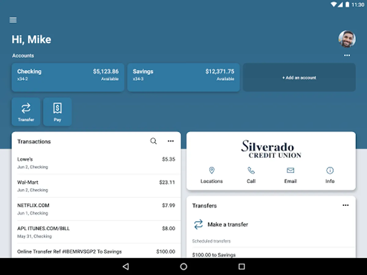 To use the Silverado Online App, you must be enrolled as a Silverado Credit Union Internet Banking User. If you currently use our Internet Banking, simply download the app, launch it, and login with the same Internet Banking credentials. After you successfully login to the app, your accounts and transactions will begin updating.