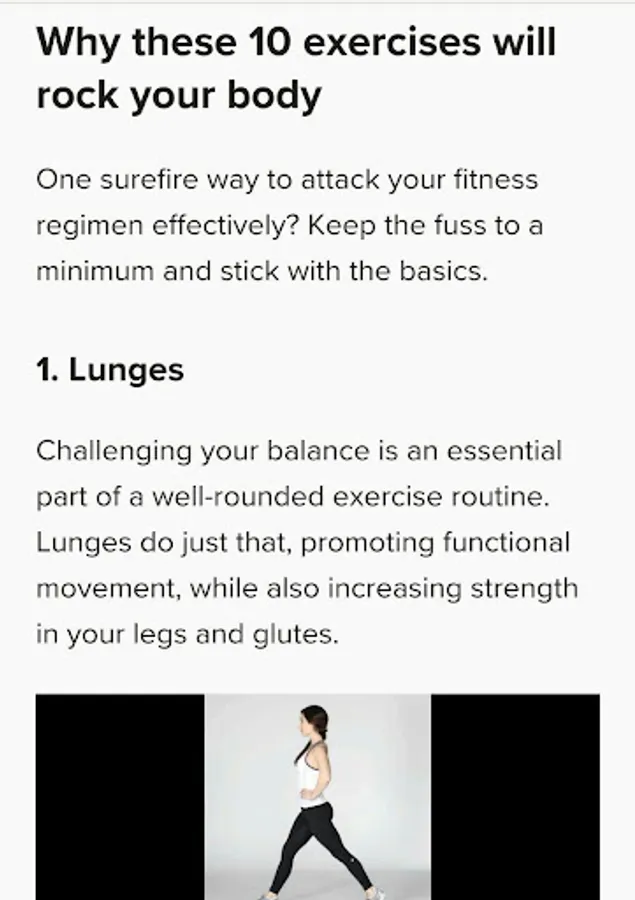 Easy to follow step by step exercises to tone every inch of your body. Ten best body exercises include lunges, pushups, squats and many more. All with animated images for easy understanding.