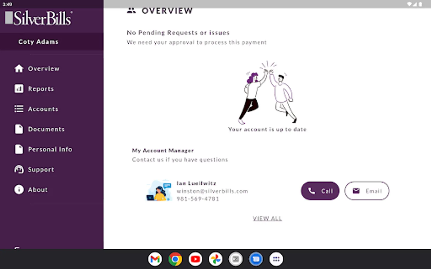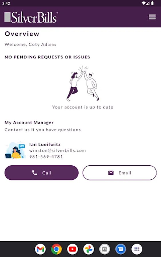 At SilverBills, we take the security of your personal and financial information seriously. Our app uses encryption to protect sensitive data and is designed with user privacy in mind. Using our intuitive and user-friendly interface makes it easy to interact with your account manager and access your billing information on the go.